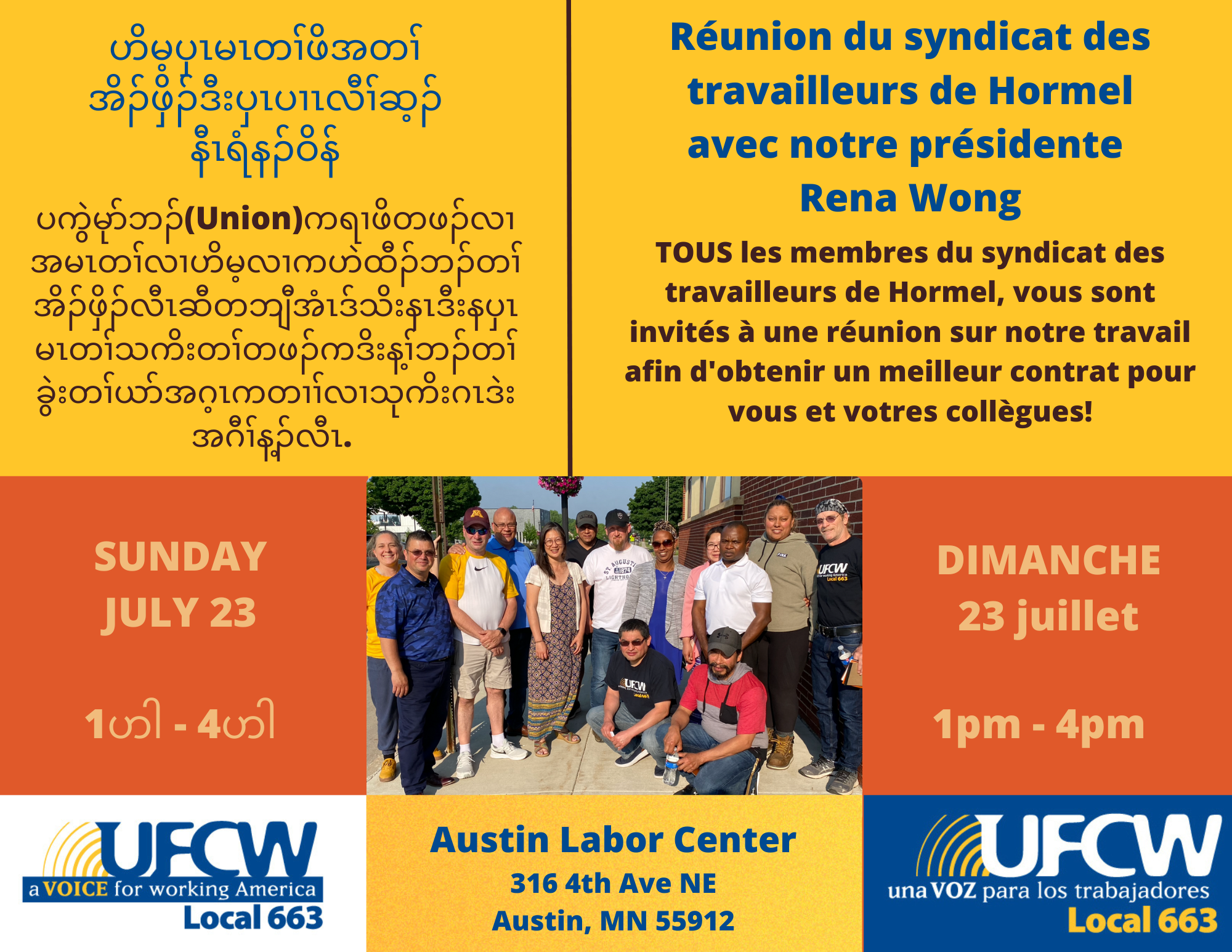 For UFCW Local 663 members at JBS, Hormel, Quality Pork Products, Butterfield Foods, Tony Downs Madelia and other meatpacking, poultry processing workers, membership in UFCW means: