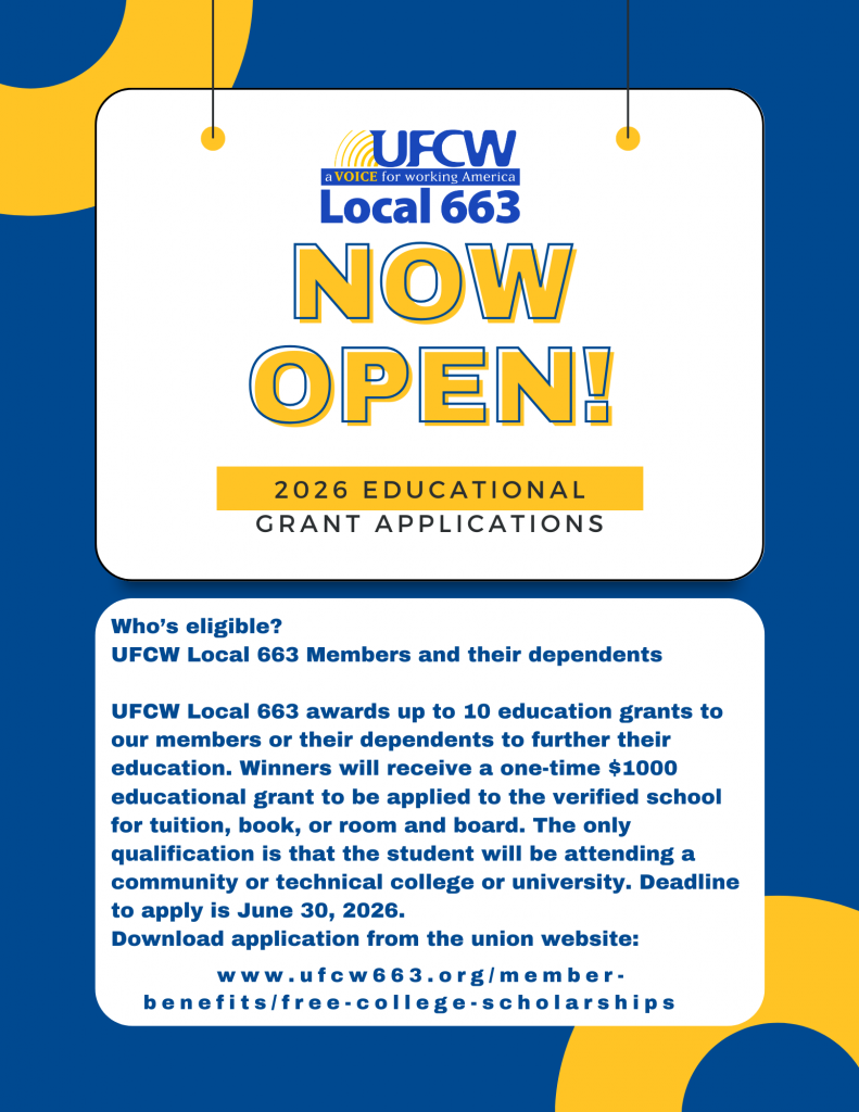 We are awarding ten $1,000 educational grants to our members or their dependents to further their education.